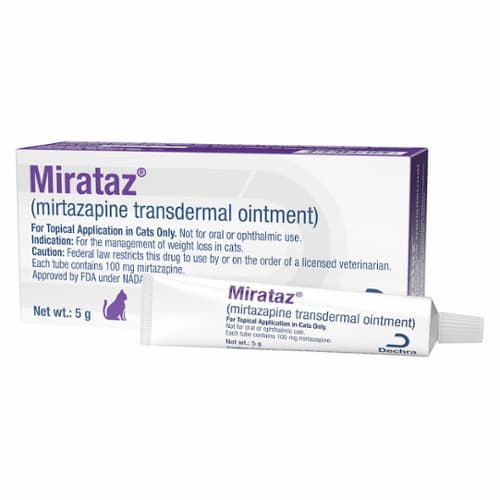 In veterinary medicine, mirtazapine has been used off-label in cats. This means that while the medication was not assigned for use in cats by the FDA, many veterinarians prescribed it because they saw the positive effects it could have on their feline patients. In 2018, a transdermal mirtazapine under the brand name Mirataz was FDA-approved and became available in the United States. Mirtazapine is available in all states and is readily available at any veterinary office.